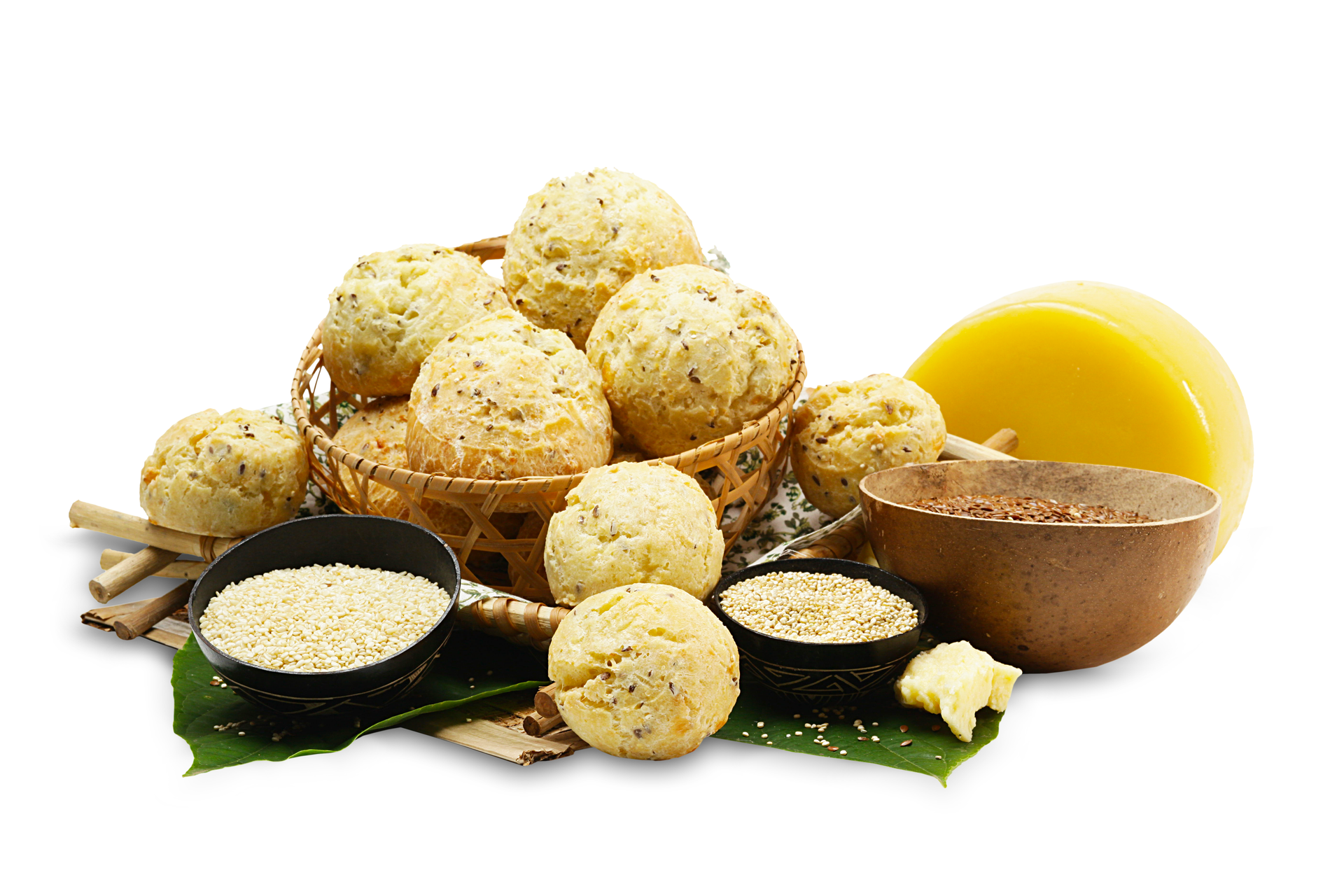 Água, fécula de mandioca, ovo integral pasteurizado, amido de mandioca modificado, queijo, polvilho azedo especial, farelo de aveia, gordura vegetal, linhaça, gergelim, quinoa, sal, composto lácteo e extrato de levedura